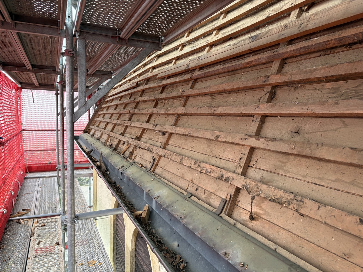 L’Office cantonal du patrimoine bâti et immatériel supervise les travaux. « Notre rôle est de suivre tous les travaux des bâtiments qui sont sous protection cantonale et le temple de Bôle en fait partie », explique Marie Majeux, architecte et collaboratrice scientifique à l’OCPI. « On doit trouver l’équilibre entre les normes de construction actuelles et la tradition constructive du bâtiment », ajoute l’architecte. Dans le cas du temple de Bôle, les contraintes étaient moindres, estime la collaboratrice scientifique de l’OCPI, car la toiture est refaite à l’identique. Pour le voir, il faut grimper les quelques marches qui permettent de rallier le haut de l’échafaudage et découvrir les travaux en cours :
